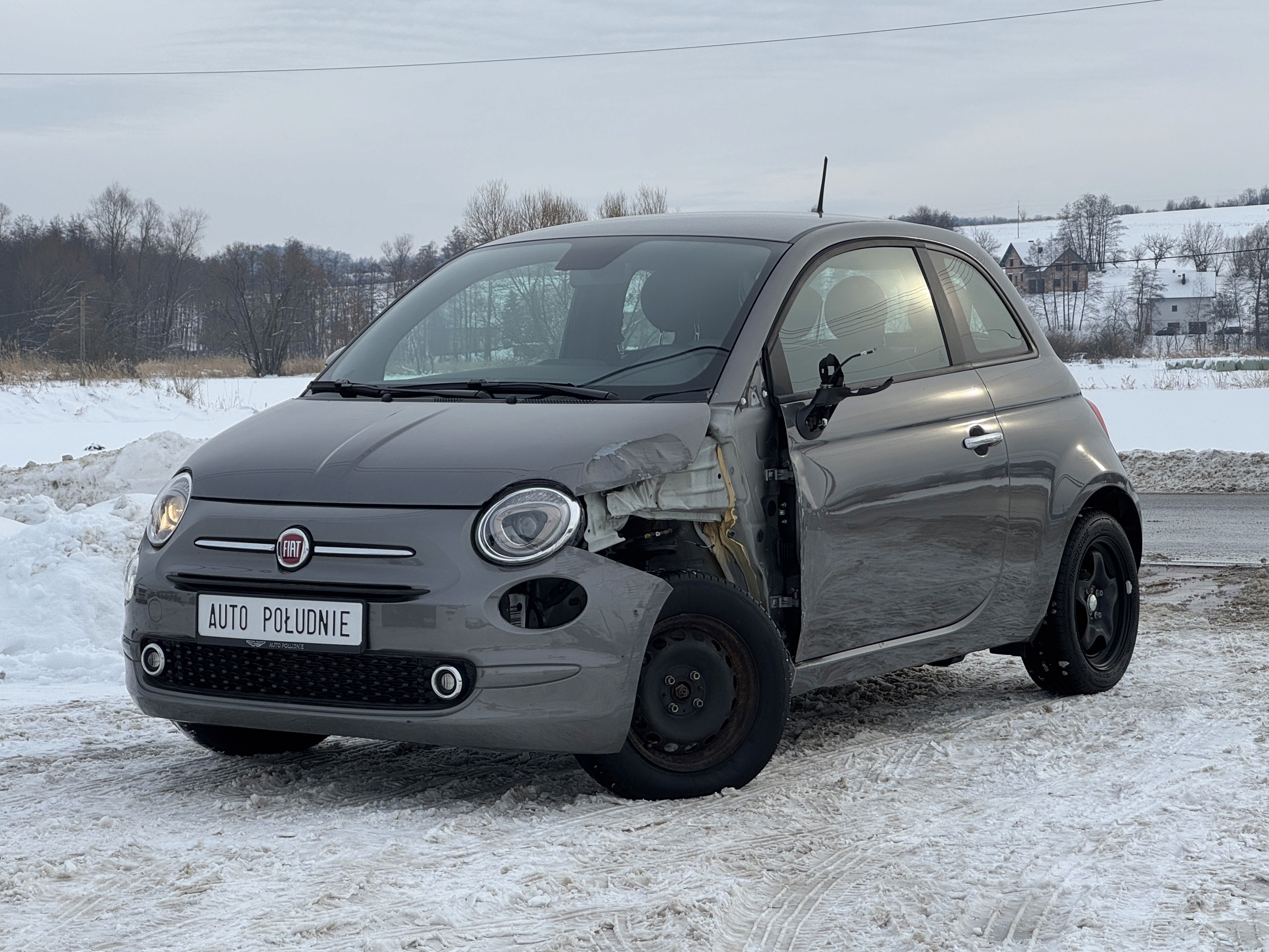 FIAT 500 z 2023 roku. Silnik benzynowy 1,0L wspomagany silnikiem elektrycznym o łącznej mocy 70km. Manualna skrzynia biegów. Mały zwinny i oszczędny samochód. Samochód uszkodzony. Uszkodzenia widoczne na zdjęciach, poduszki powietrzne nie naruszone, auto pali i jeździ normalnie, brak błędów/komunikatów Do samochodu komplet dokumentów. Możliwość naprawy u nas i odbiór sprawnego samochodu z gwarancją. Przyjmujemy samochody w rozliczeniu. Oferujemy transport do klienta pod dom i zakup samochodu bez wychodzenia z domu. Prosimy o kontakt przed przyjazdem i umówienie się na oględziny. Sprawdź naszą pełną ofertę na www.autopoludnie.pl We speak English also - mówimy także po angielsku