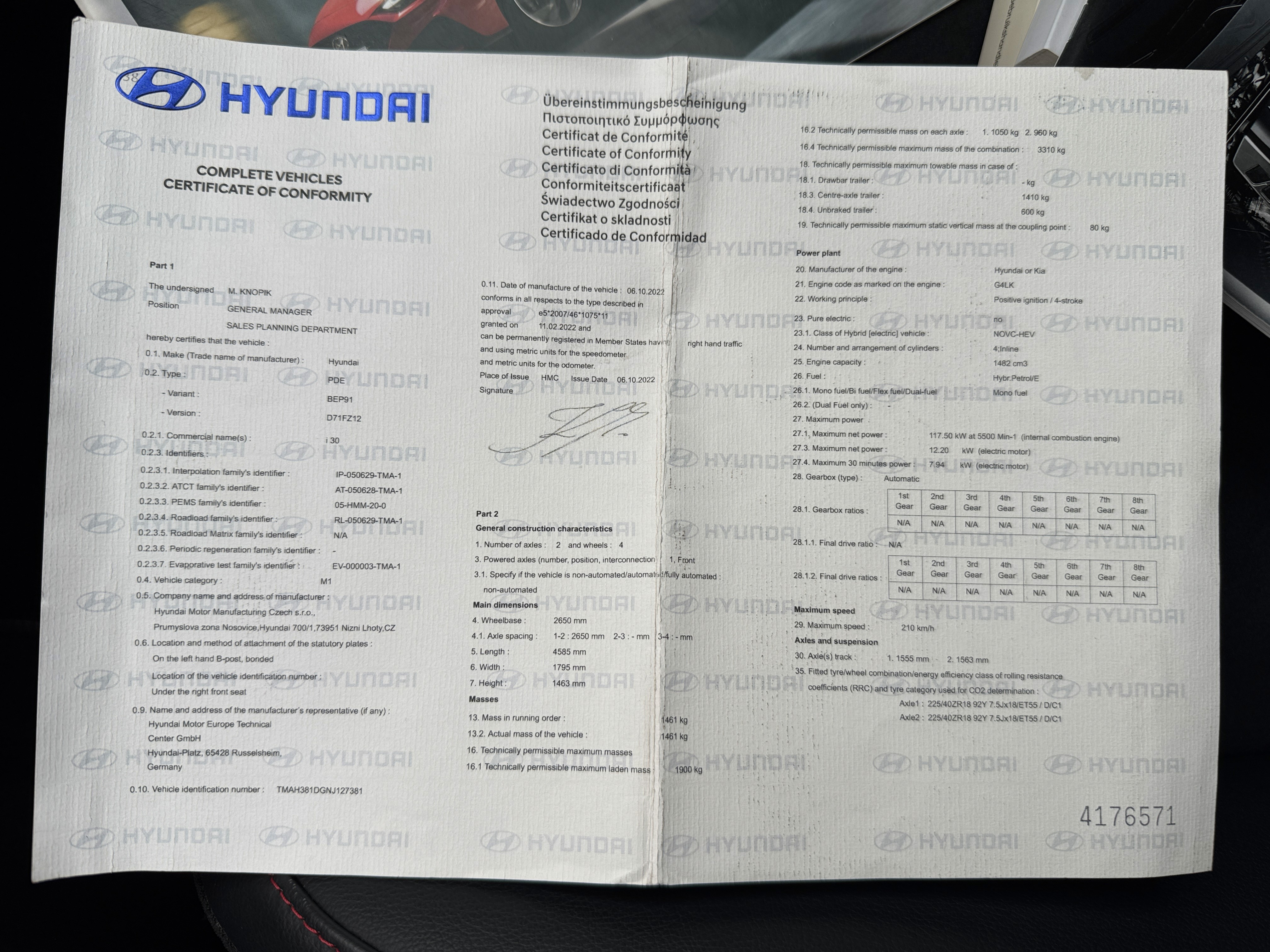 Nawigacja, alufelgi, elektrycznie ustawiane i podgrzewane fotele, klimatyzacja dwu strefowa, tempomat, asystent pasa ruchu, światła LED, czujniki parkowania przód i tył, kamera cofania, Android Auto, apple carplay, bluetooth, tempomat, czujnik deszczu, asystent utrzymania pasa ruchu, asystent ruszania pod wzniesienie, Isofix, komplet dokumentów i dwa kluczyki.